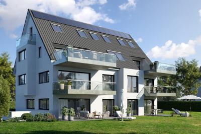 Wir konnten in dieser herrlichen Wohnlage ein sehr schönes, insgesamt 631 m² großes Grundstück erwerben. Hierauf erstellen wir ein architektonisch attraktives Wohngebäude mit lediglich 6 Wohneinheiten, so dass ein individuelles und ruhiges Wohnen gewährleistet ist. Alle Wohnungen sind aufgrund des Gebäudezuschnitts bestens belichtet. Von den oberen Geschossen besteht zudem eine schöne Sicht. Darüber hinaus haben wir bei der Planung besonderen Wert auf einen gehobenen Wohnkomfort gelegt. Das Wohngebäude wird u.a. mit einem Personenaufzug ausgestattet, welcher einen direkten, barrierefreien Zugang zu allen Wohnungen vom Eingang und der Tiefgarage ermöglicht.